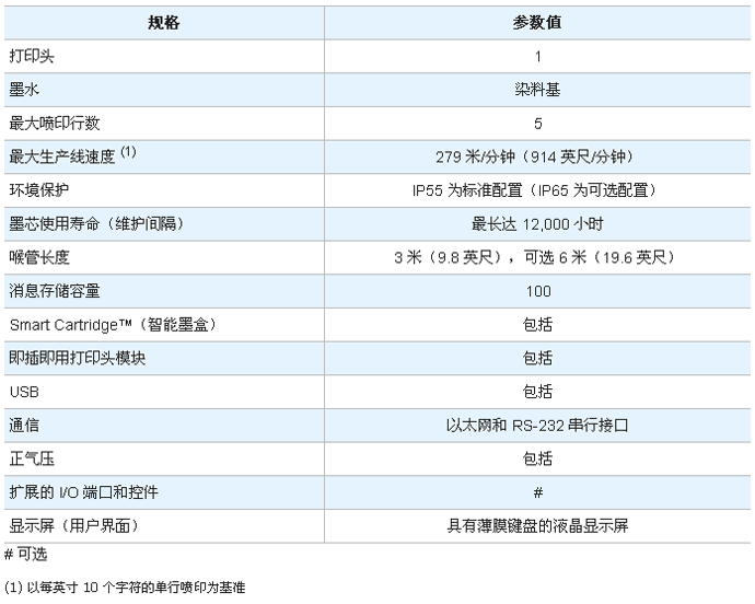 可噴印 1 到 5 行,噴印速度可達 162 mpm (553 fpm)